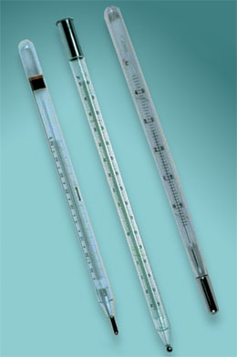 Термометр ТМ-1, термометр ТМ-2, термометр ТМ-3, термометр ТМ-4, термометр ТМ-5, термометр ТМ-6, термометр ТМ-7, термометр ТМ-8, термометр ТМ-9, термометр ТМ-10 - скляний термометр з вкладеною шкальной пластиною з листового скла молочного кольору.